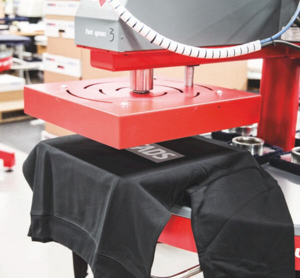 Die Motive werden auf Flockfolie aufgebracht und ausgeschnitten. Durch Hitze wird die Folie auf die Textilien gepresst und somit dauerhaft verbunden.